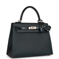 Hermès Kelly Sellier 25 Vert Rousseau Madame and Shiny Niloticus Crocodile Touch Gold Hardware