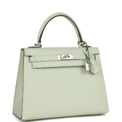 Hermès Special Order (HSS) Kelly Sellier 25 Bleu Brume and Bleu Glacier Epsom Brushed Gold Hardware