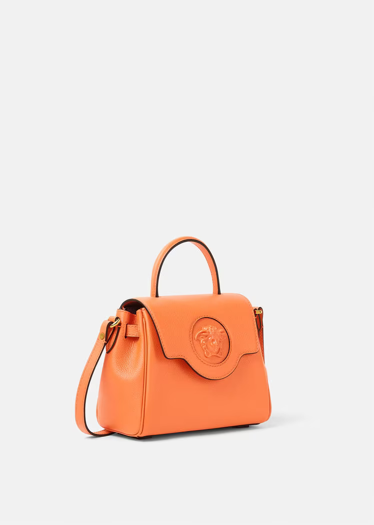 Crafted in Italy from premium leather, Versace’s latest handbag is adorned with a Medusa plaque – the same décor that was discovered on the doors of the brand’s first headquarters in Milan. The slouchy silhouette can be styled on the wrist or across the shoulder, featuring two detachable shoulderstraps: one leather and one chain.