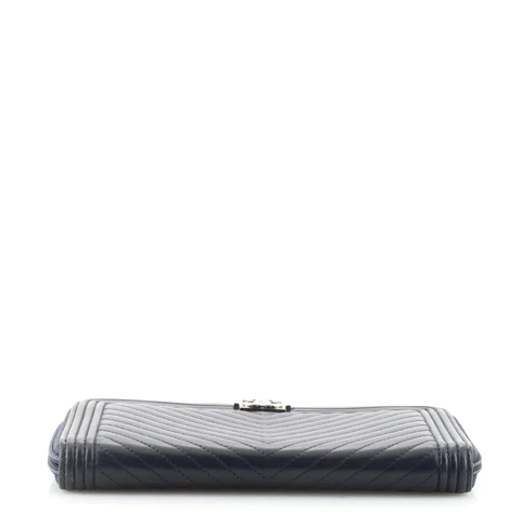 Chanel Boy Zip Around Wallet Chevron Calfskin Long