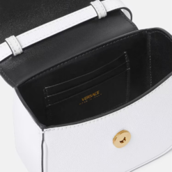 The La Medusa mini bag has been crafted in Italy from grained leather. The central Medusa is instantly recognizable, and the fixed-chain top handle adds an alternate carry option along with the detachable and adjustable shoulder strap.