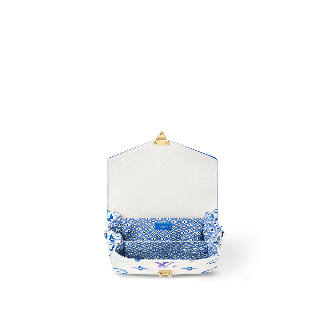 The Pochette Metis handbag is made from cream-color canvas with pastel LV’s and Monogram Flowers printed with a delicate watercolor effect. The top handle and removable strap feature a denser pattern of the Monogram Flowers, reminiscent of the painted ceramic tilework found in Lisbon.