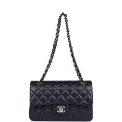 Chanel Small Classic Double Flap Navy Lambskin Light Gold Hardware