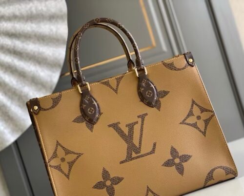 The name says it all: Onthego MM takes care of business or shopping, with plenty of room for a busy woman’s essentials. With classic Monogram canvas on one side and Monogram Reverse on the other, it is virtually two bags in one. Twin Toron top handles and two shoulder straps offer several different carry styles, for extra versatility.