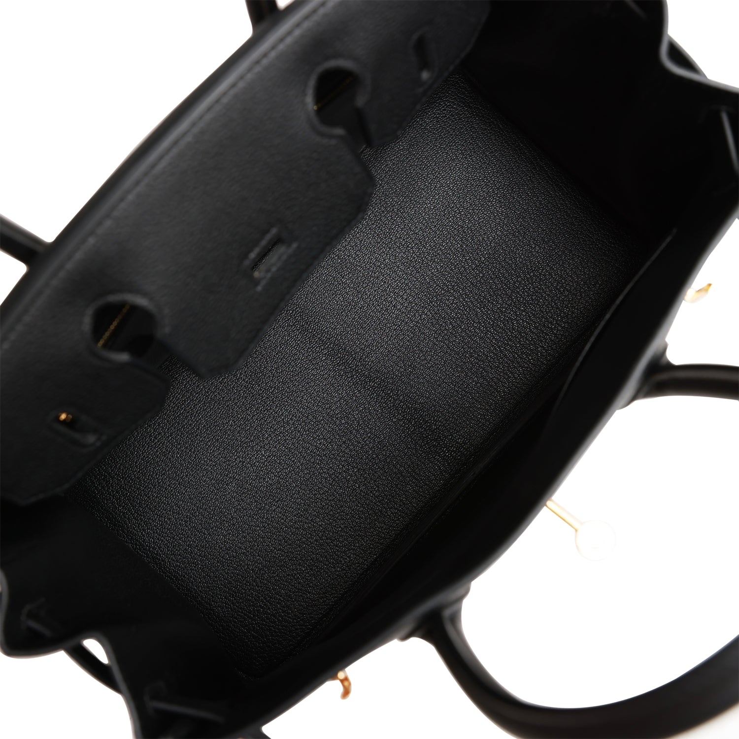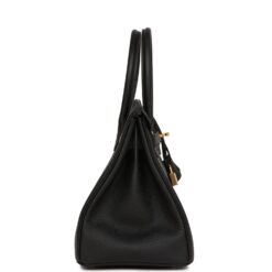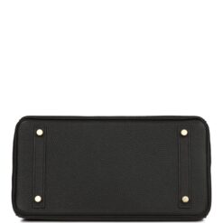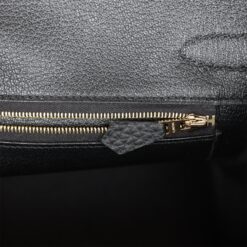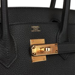 This Birkin is in Black togo leather with gold hardware and has tonal stitching,front flap, two straps with center toggle closure, clochette with lock and two keys, and double rolled handles.