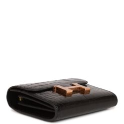 Hermès Constance Compact Wallet Black Shiny Alligator Rose Gold Hardware