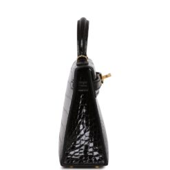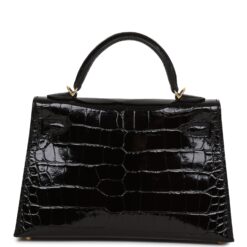 Hermès Kelly Sellier 20 Black Shiny Alligator Gold Hardware
