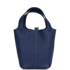 This Picotin Lock is in Bleu Saphir maurice leather with palladium hardware and has tonal stitching with two top handles.