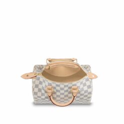 Crafted from supple Damier Azur canvas, the Speedy 25 is an elegant, compact handbag, the ideal companion for city life. Launched in 1930 as the “Express” and inspired by that era’s rapid transit, today’s updated Speedy remains a timeless House icon, with its singular silhouette, rolled leather handles and engraved signature padlock.